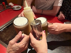 久しぶりに顔出したお店 みんなでごはんに。 お好み焼き屋さん♪ かんぱーい ドリンクが 出揃わなかったので とりあえず形だけ😂 間違い探し笑